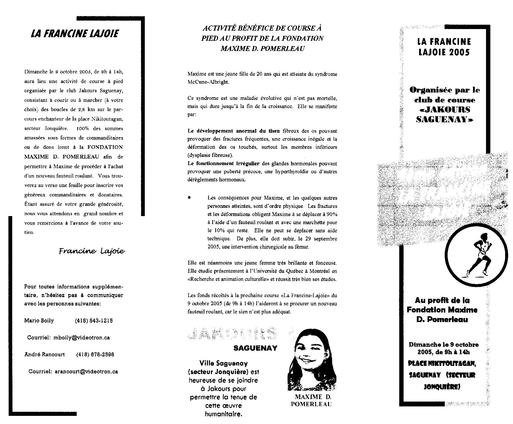 Activité bénéfice de course à pied de Jakours Saguenay avec la Fondation Maxime D.-Pomerleau