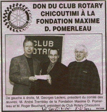 Don du Club Rotary Chicoutimi à la Fondation Maxime D.-Pomerleau