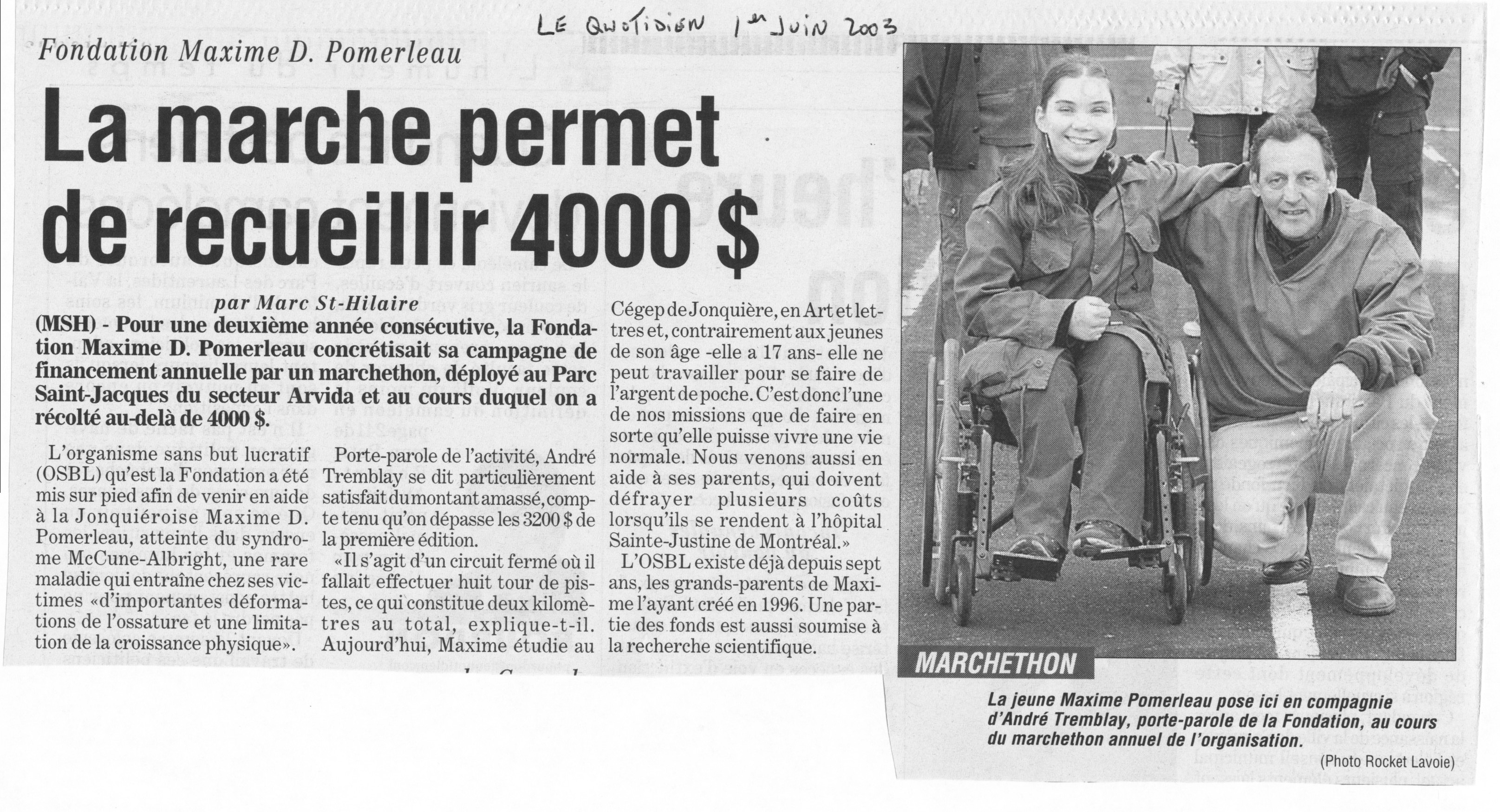 La marche permet de recueillir 4000$