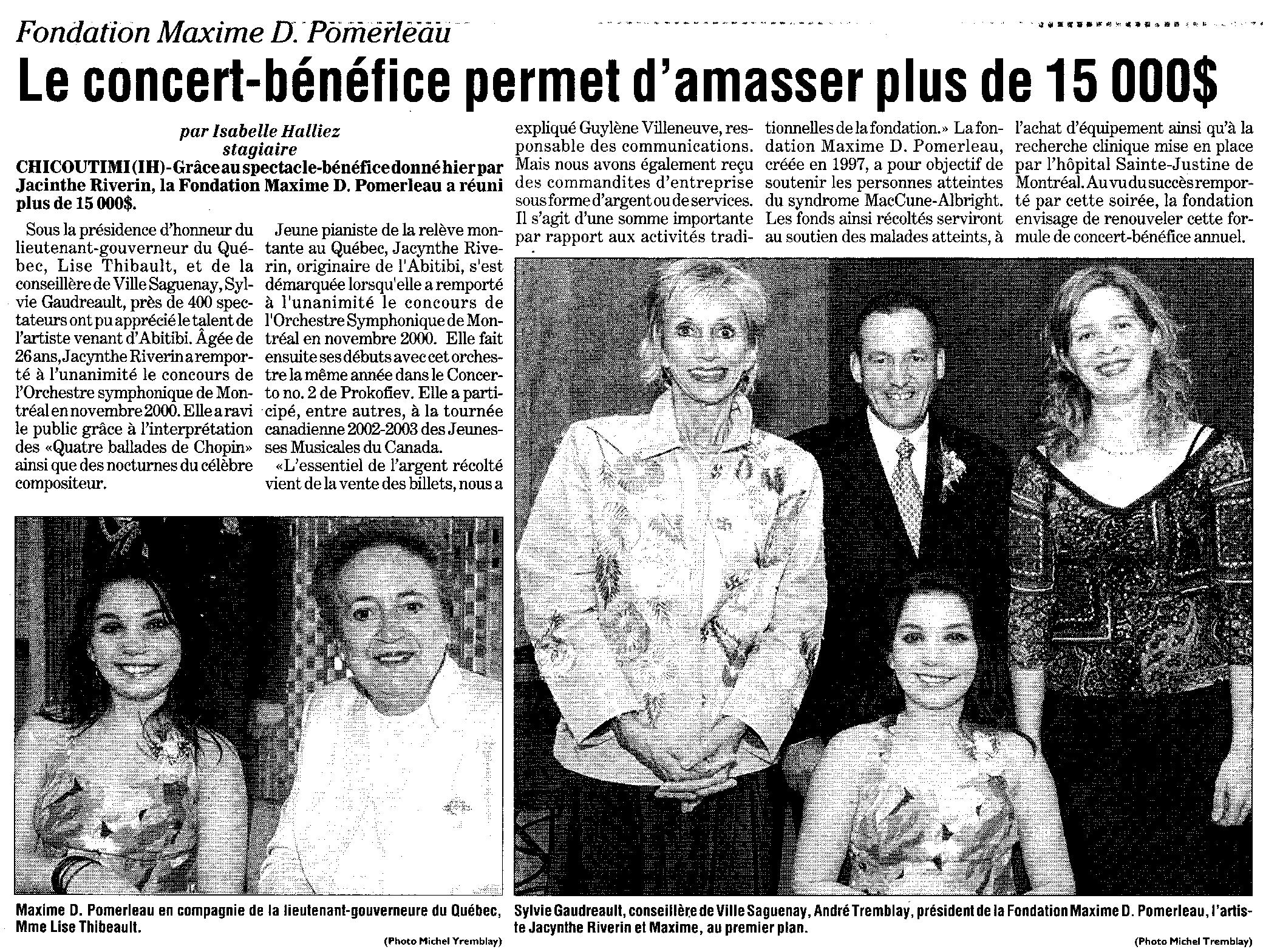 Concert pour la Fondation Maxime Pomerleau